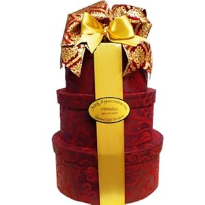 Send an elegant token of your sentiments with this decadent, premium chocolate gift tower, richly detailed with velvet flocked scrolls and ribbon