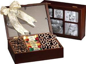 Open this gift box to reveal a collection of mouth-watering treats including chocolate covered nuts, an assortment of Ghirardelli truffle squares, and mini pretzels smothered in chocolate.